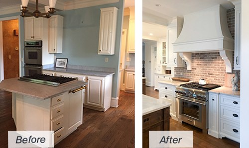 This home lacked any sort of functional or visual connection between the front of the house and the spacious family room area in the rear. Using strategic interventions (i.e., moving a stairway), we opened sightlines through the entire house while placing the kitchen in an ideal, central location.